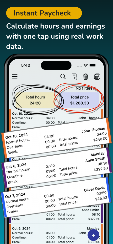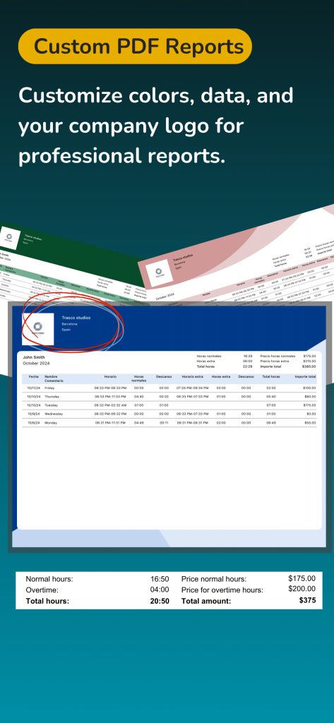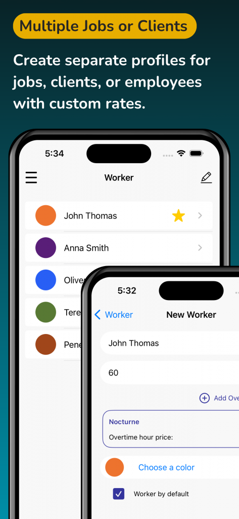 The app also makes it possible to manage multiple jobs at the same time, or organise different workers, businesses, clients or projects separately. This helps keep worked hours, rates and records clearly separated for each profile, depending on the user’s needs. In addition, users can generate PDF reports, making it easy to review, save or share work summaries and payment details in a professional format.